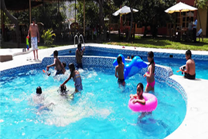 Quienes somos amantes de la naturaleza podemos disfrutar de este bello lugar, sus instalaciones poseen todas las comodidades para albergar al visitante, el área con más de seis mil metros cuadrados tiene jardines, árboles frutales, juegos recreativos, piscinas, cómodas y cálidas habitaciones y bungalóws, que proporcionan una estadía diferente y felíz.